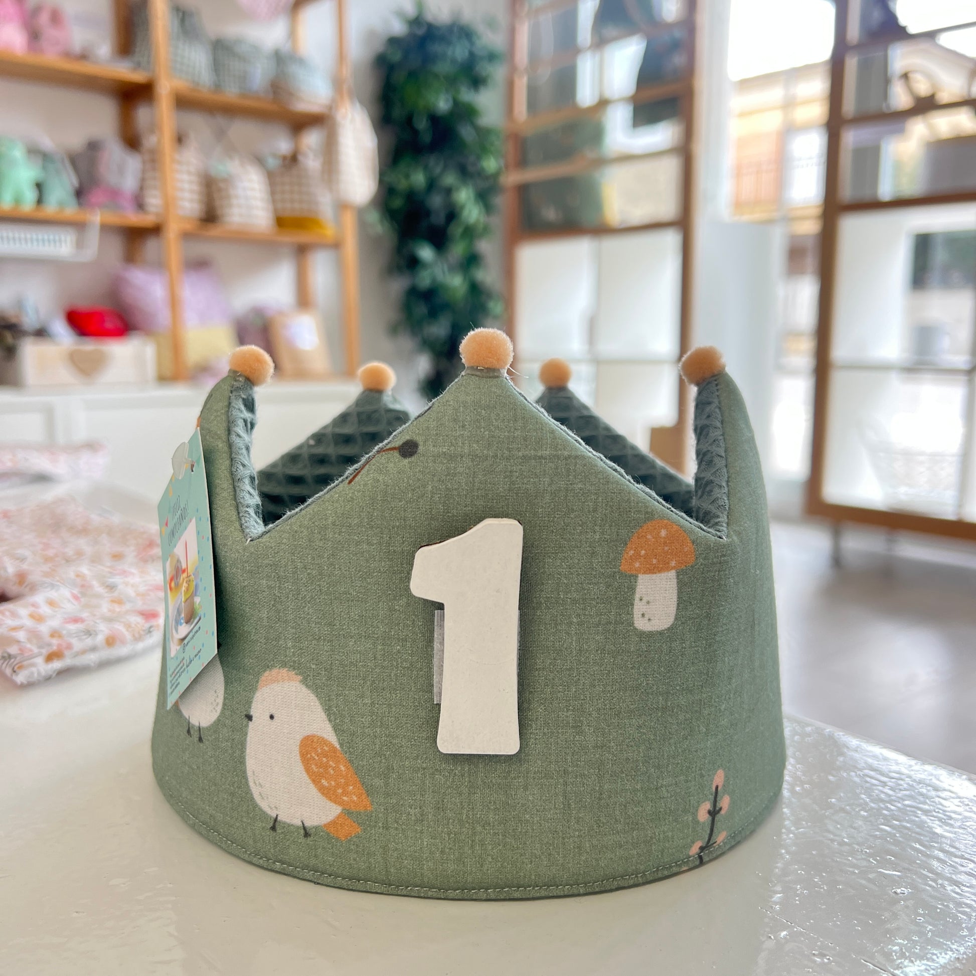 Haz que cada cumpleaños sea inolvidable con nuestra preciosa corona de tela reversible.