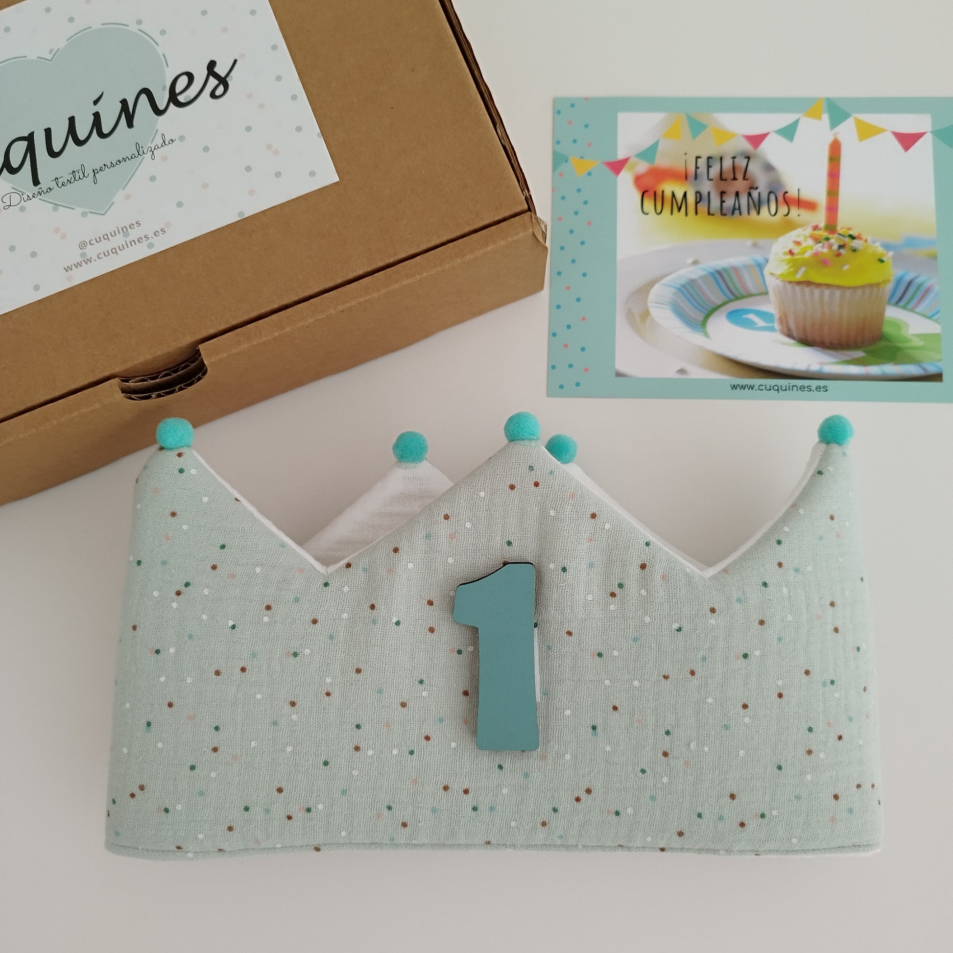 -Pack Cuquicumple: corona + camiseta + topper con números