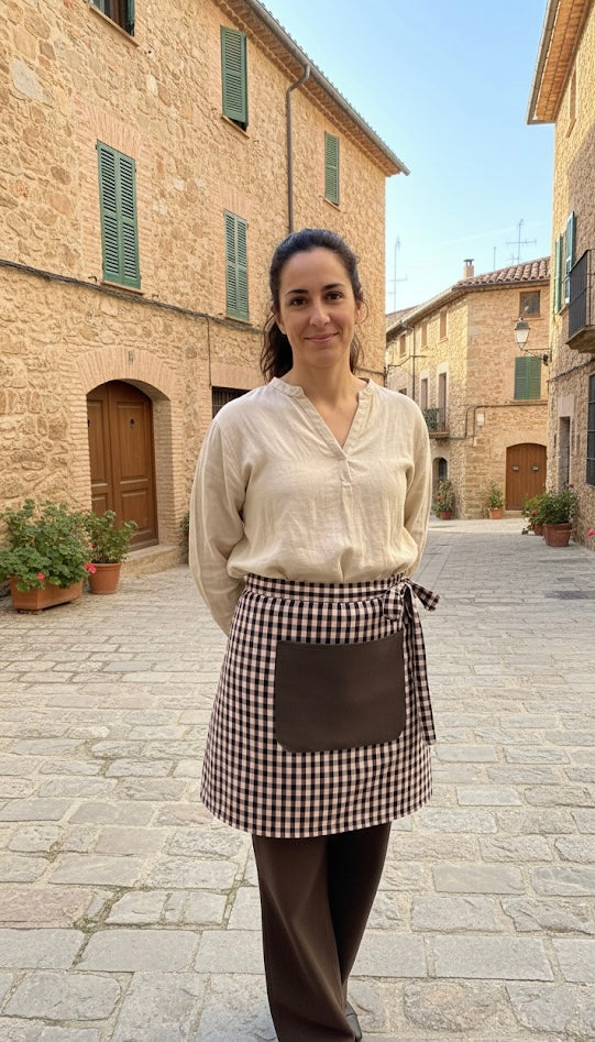 Listo para las fiestas de otoño! Este delantal de castañera está confeccionado con la tradicional tela de farcell de cuadros, resistente y con ese toque rústico tan característico.
