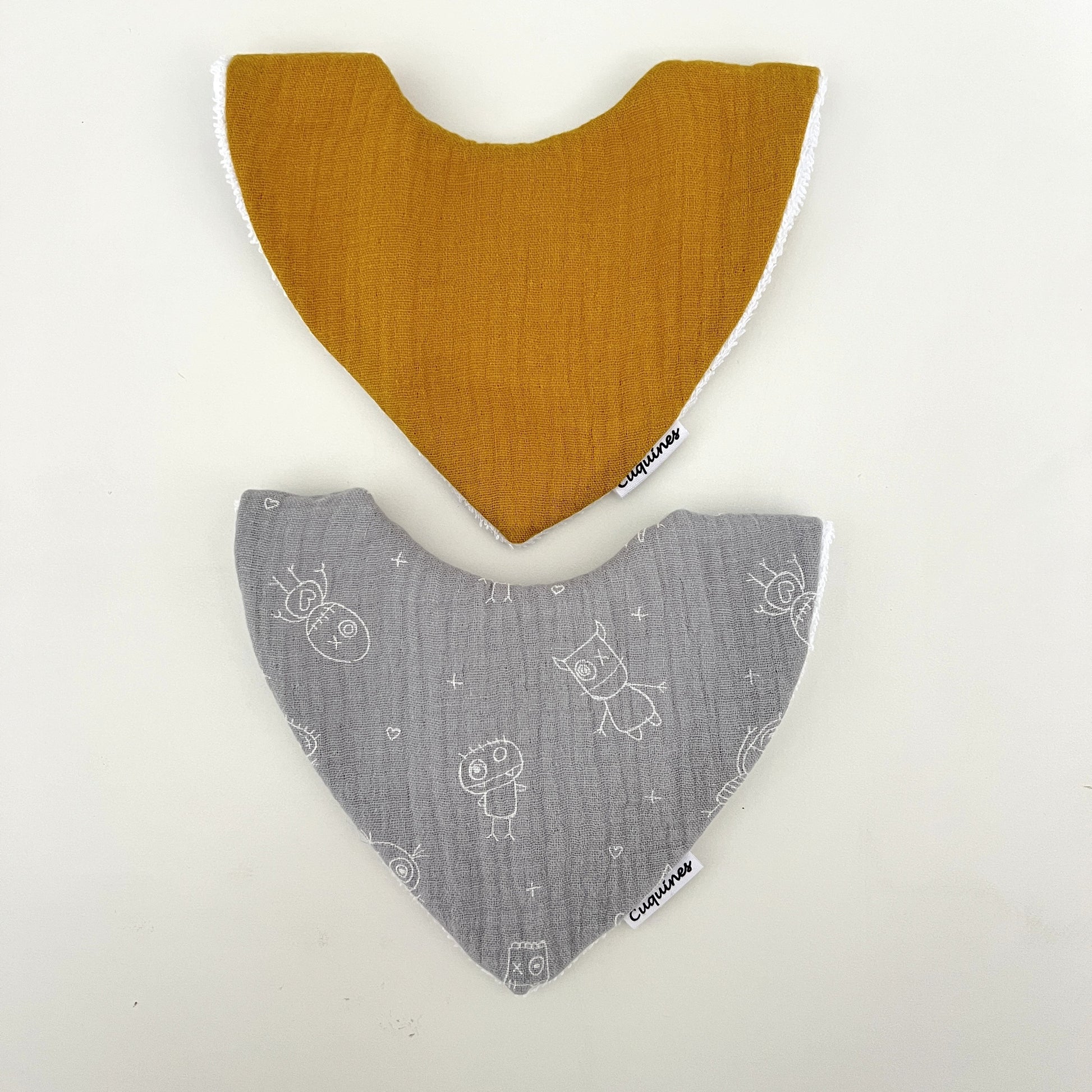 Este pack incluye 2 bandanas de bebé con rizo de bambú, un imprescindible para el día a día. Una bandana con tejido estampado y otra lisa, pensadas para combinar con cualquier look y mantener la piel del bebé seca y cómoda.